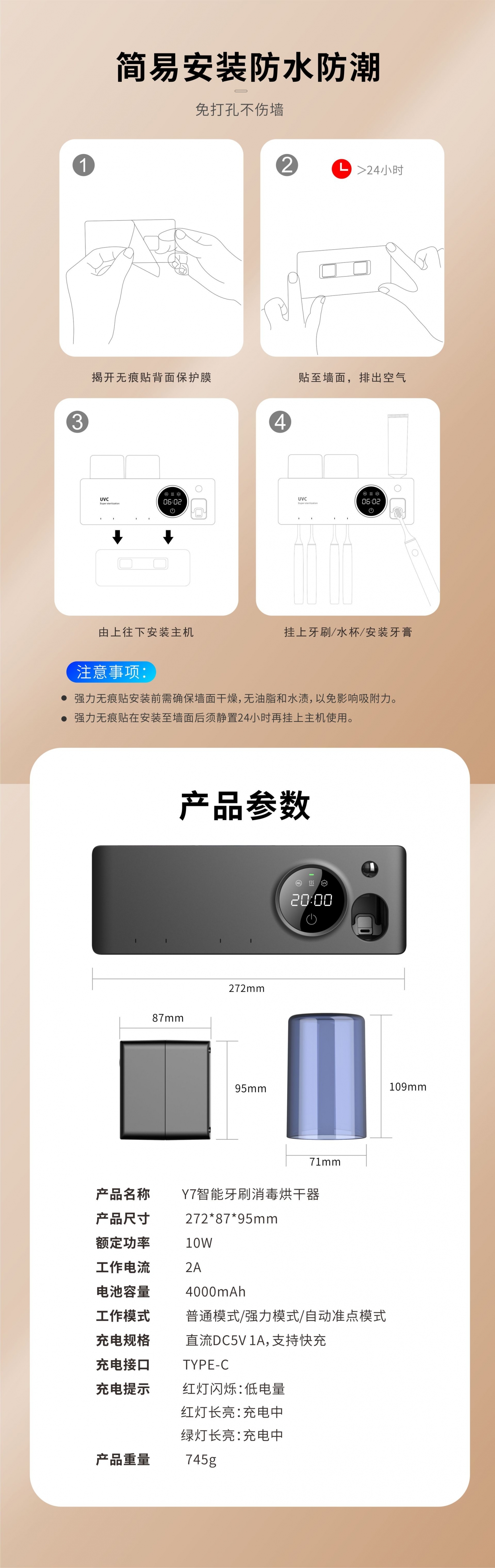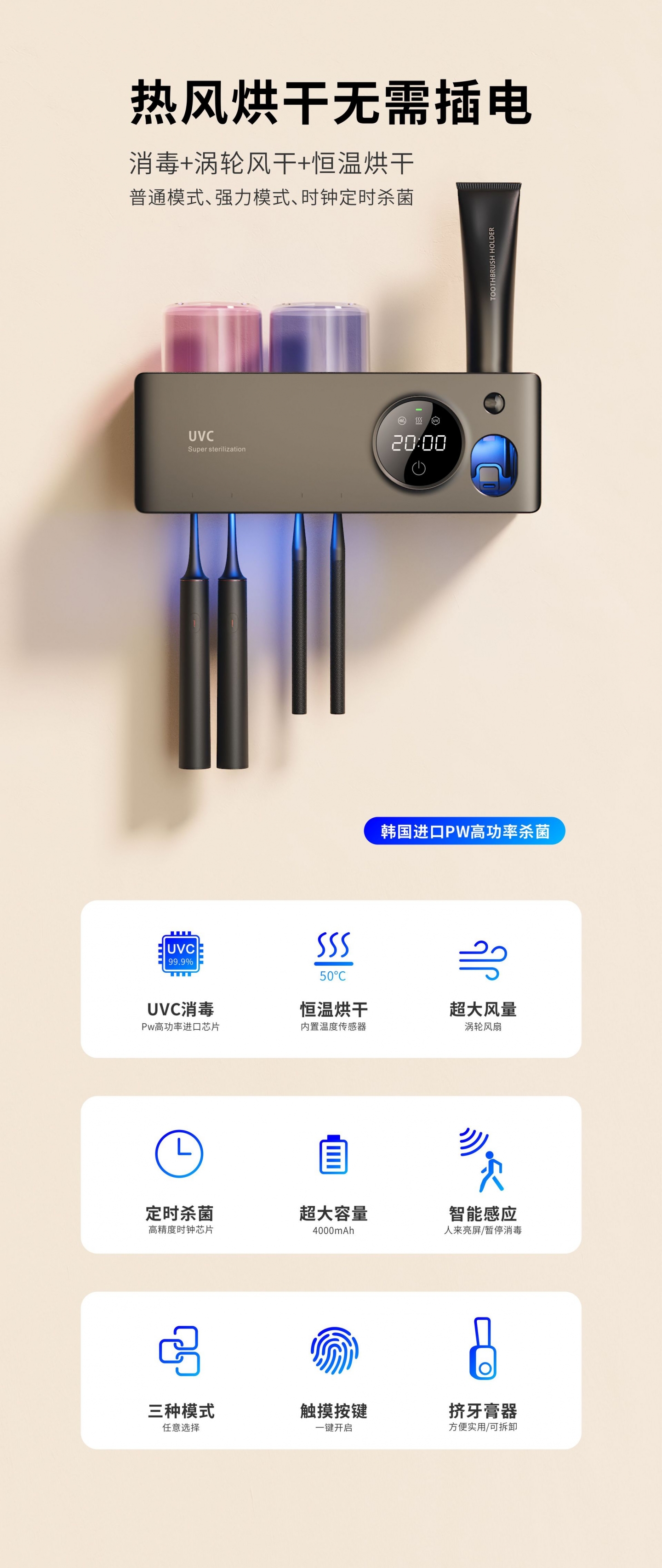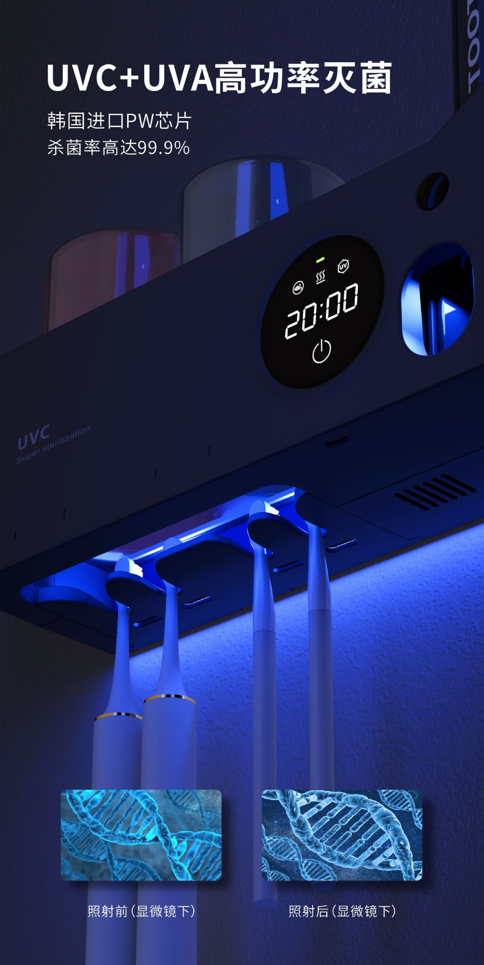 24小時自動+手動殺菌,隨時都有乾淨的牙刷