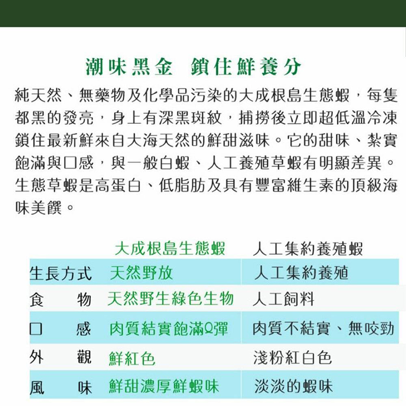 2.商品品名:罕見8P野生海養無毒生態根島蝦800g±5%/盒