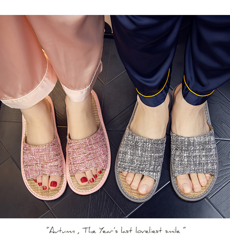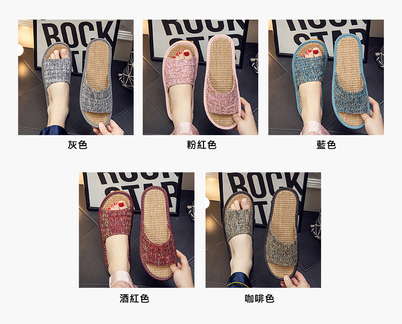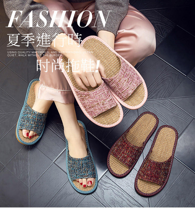 悅生活--Best buy 希臘精品亞麻素色防滑透氣款室內氣墊拖鞋