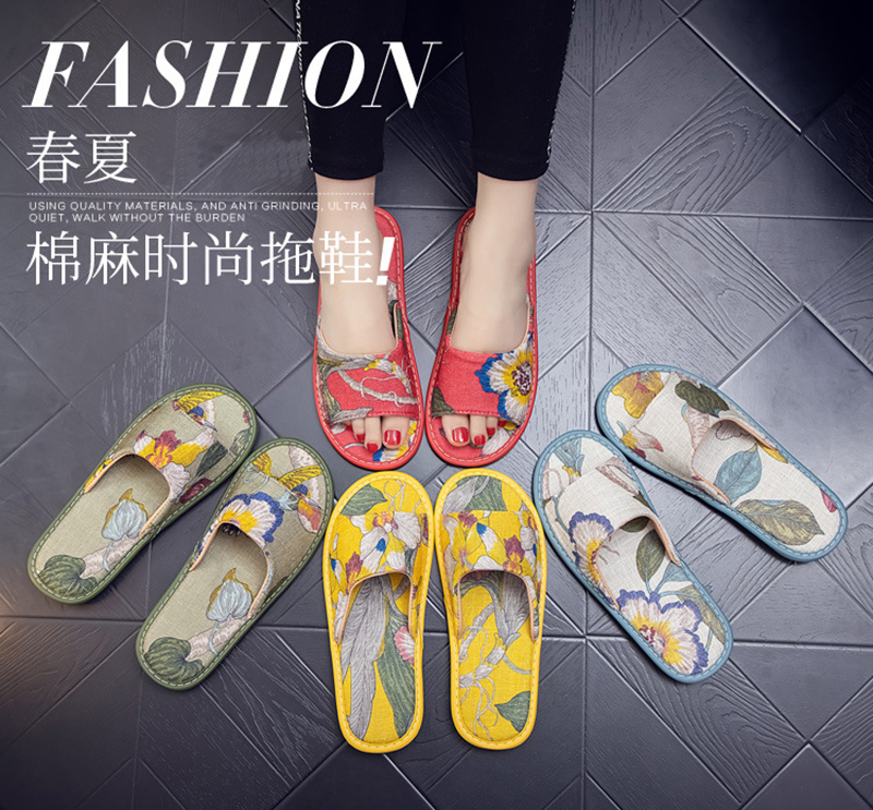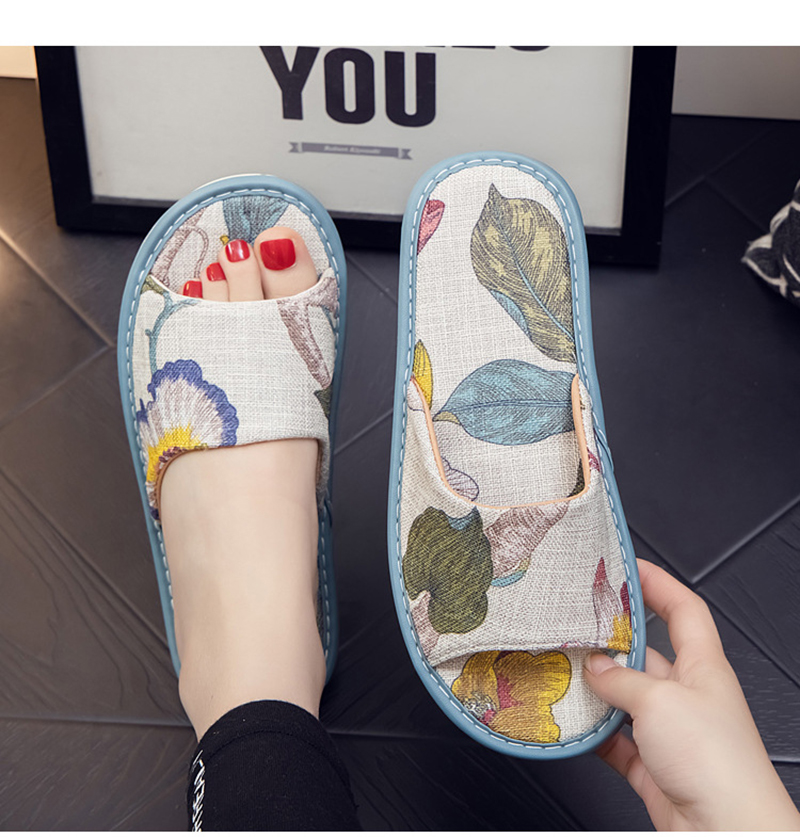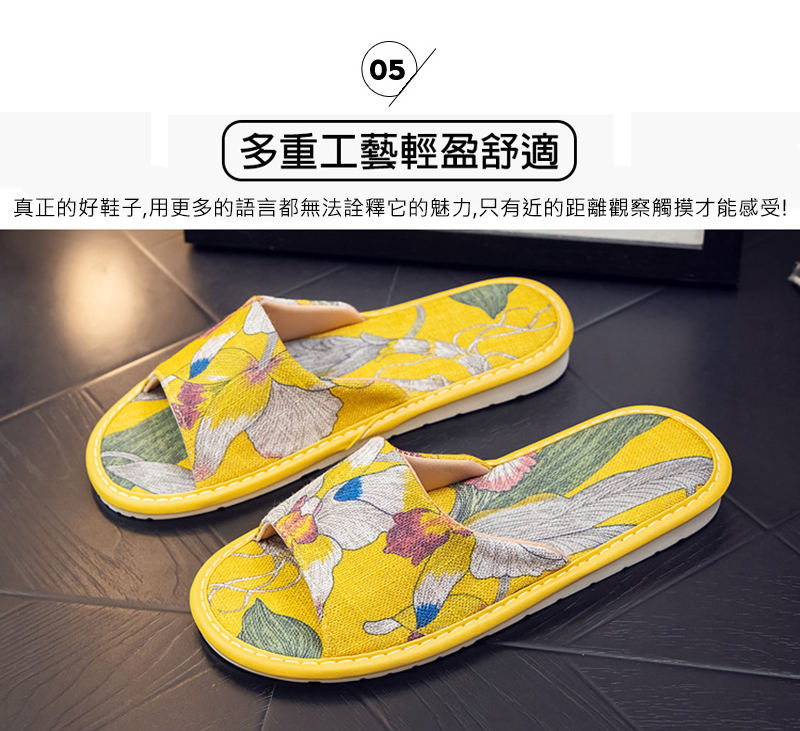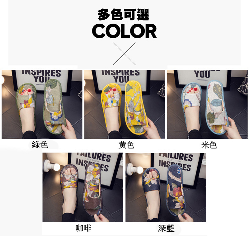 悅生活--Best buy 希臘精品亞麻花防滑透氣款室內氣墊拖鞋