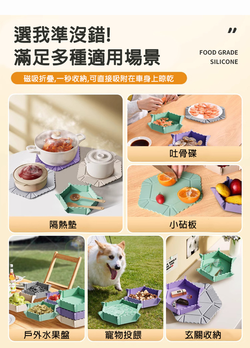 可磁吸 可收納 防防燙隔熱 可放物止滑