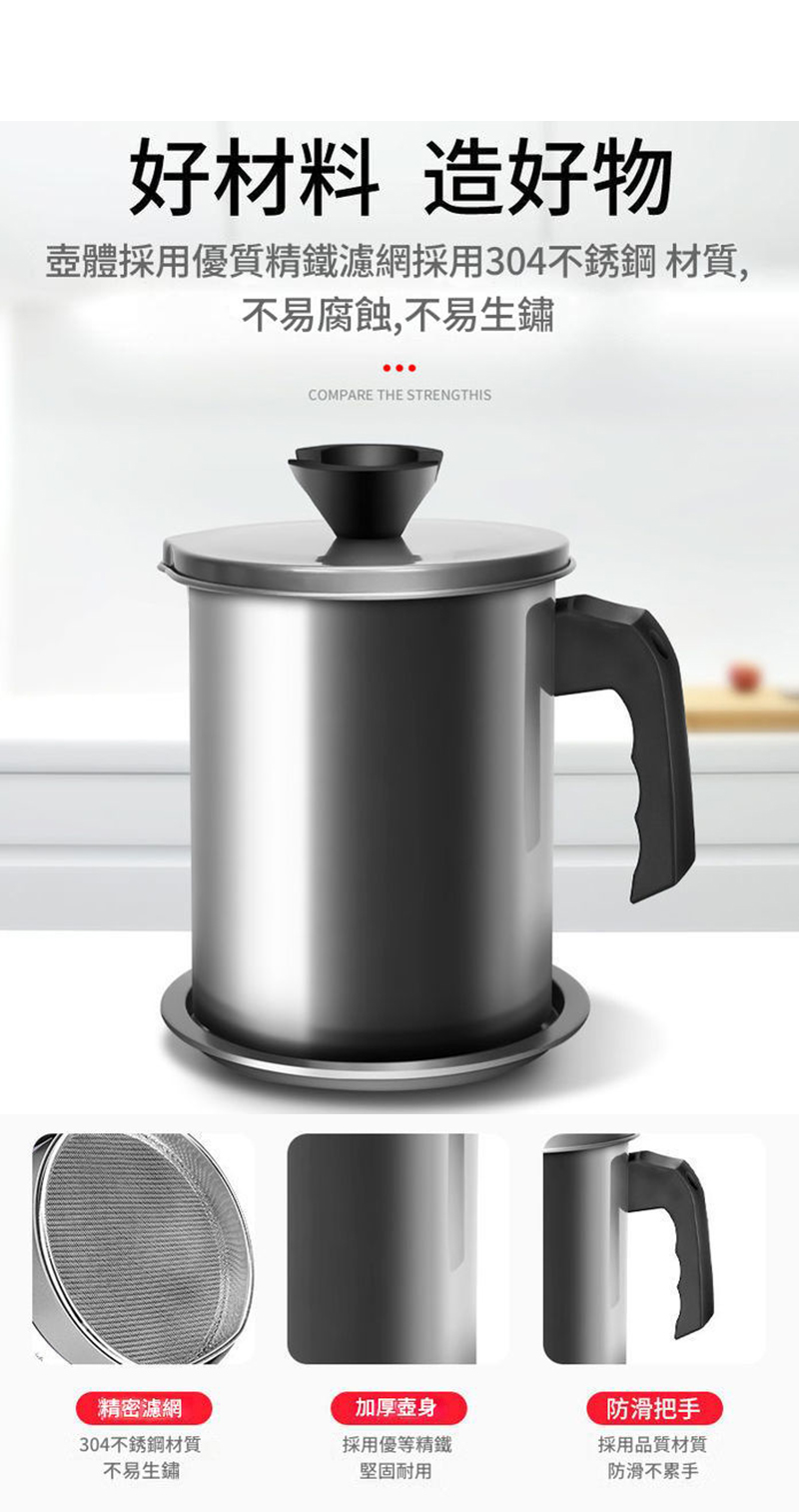 悅生活-Besty buy 304不鏽鋼日本廚師專用濾油壼1.4L