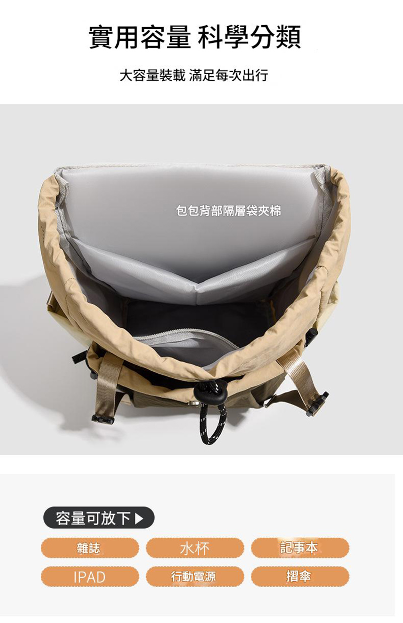 抽繩大開口 – 取物方便,快速收納,讓忙碌時刻更從容。