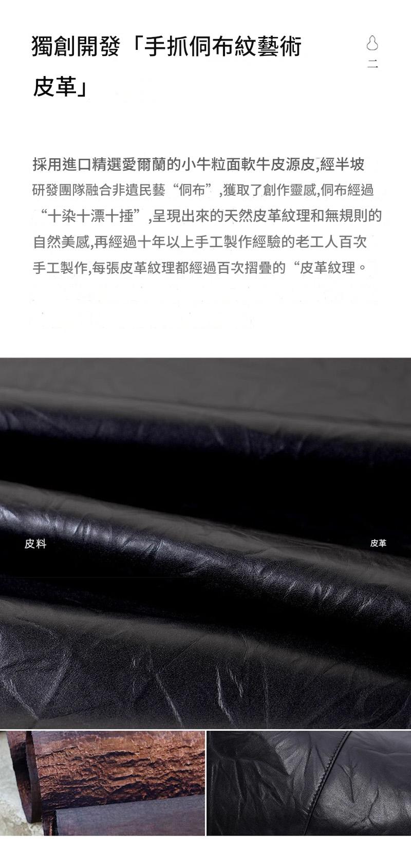 100% 小牛皮面料 –呈現自然紋理,細膩柔軟,觸感絲滑,展現高級質感。