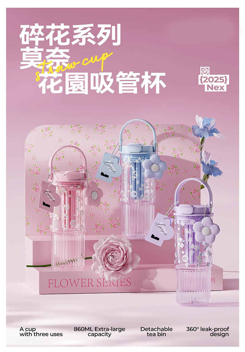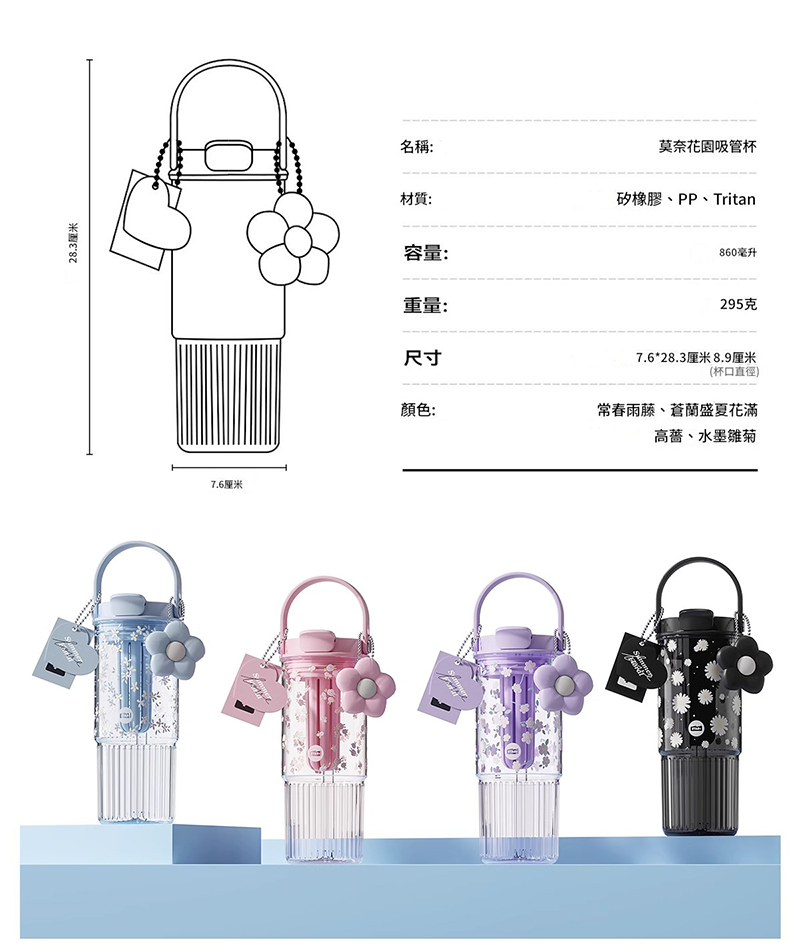 悅生活--Best buy 莫內花園Tritan吸管杯860ml