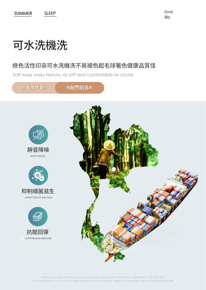 悅生活--Best buy 大地風可水洗極涼5mm加厚款乳膠涼墊(含枕套)