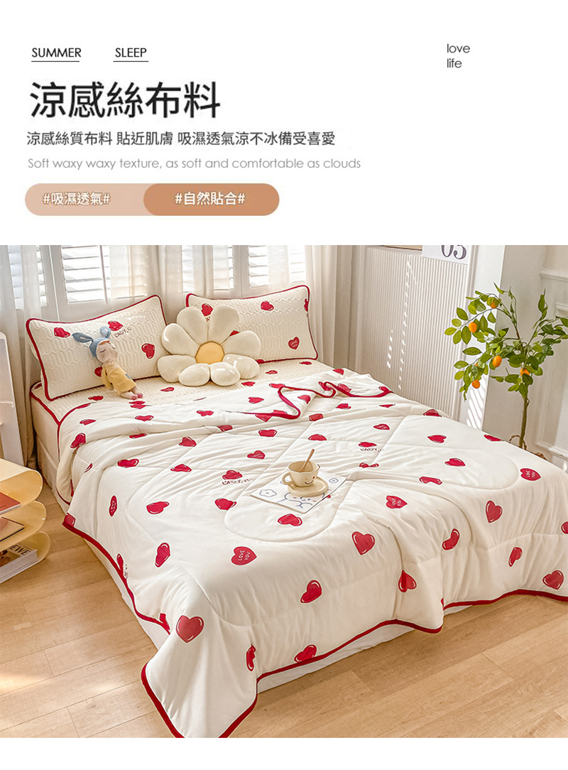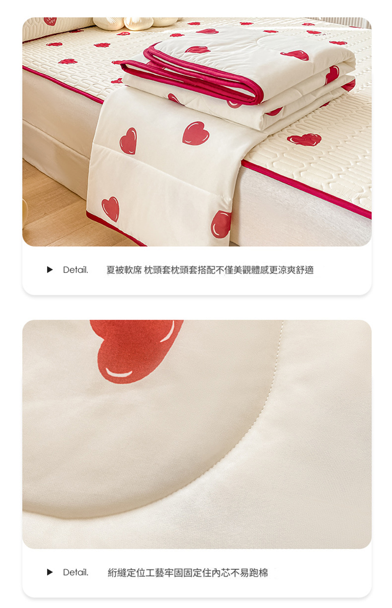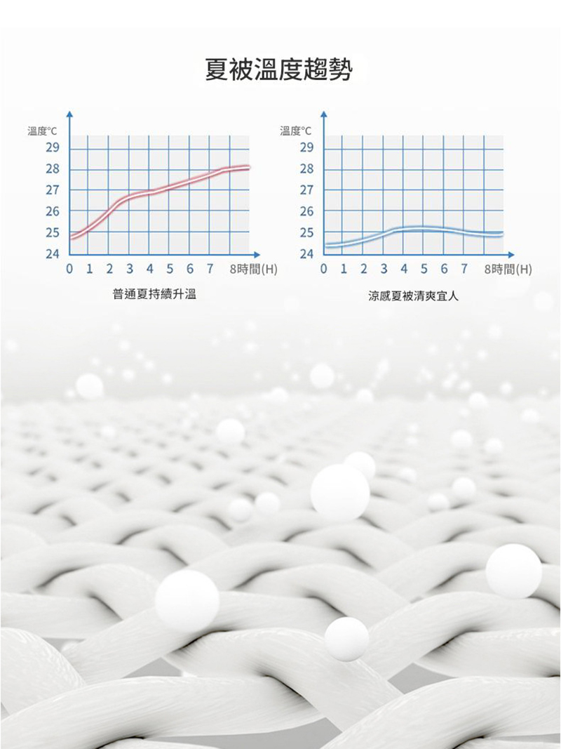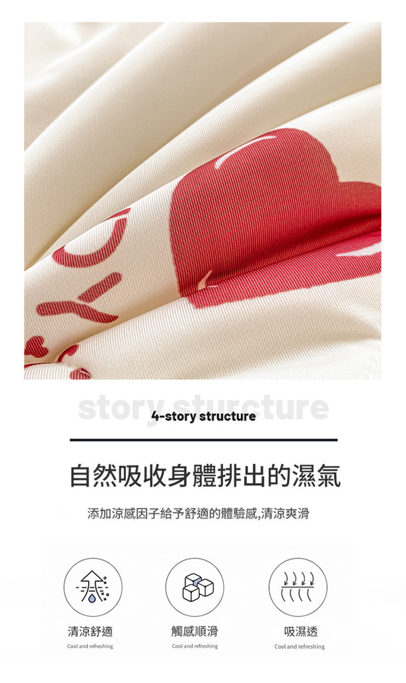 ✵涼感冰絲表布:冰絲材質觸感柔滑,具備良好的透氣性與吸濕性,能迅速降低皮膚表面溫度,帶來即時的涼爽感受。