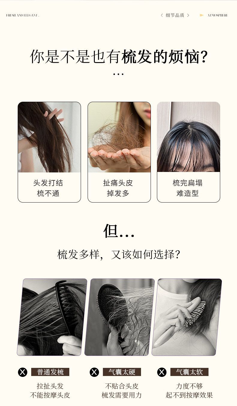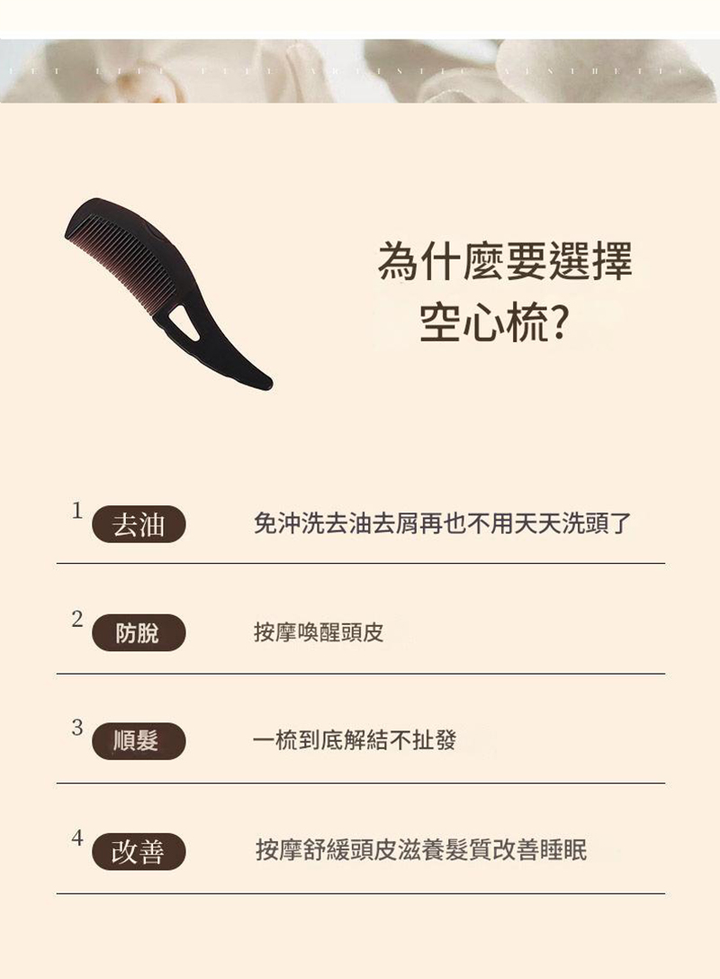防止頭髮打結--一梳到底不打結,梳髮更順手。