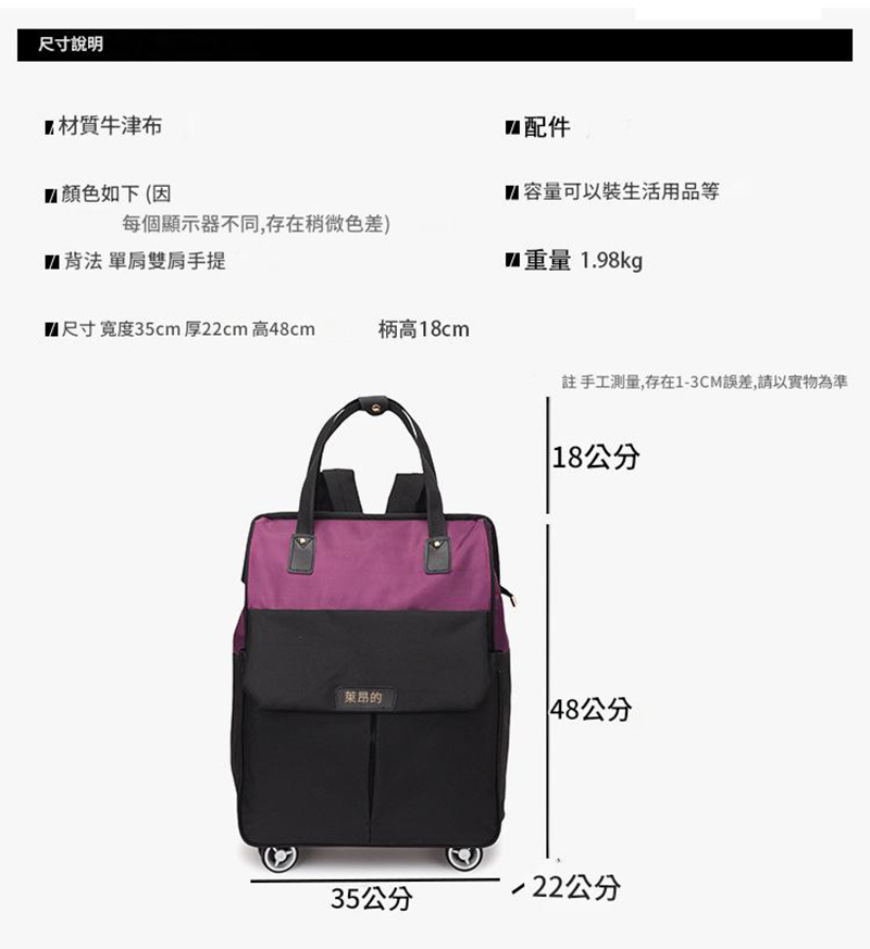 ※ 因測量方式不同,若有1~2cm誤差皆屬合理範圍。※ 拉桿間隙設計有輕微晃動感,是為了在冷熱天氣不同,熱漲冷縮時依然能將拉桿順暢拉出。