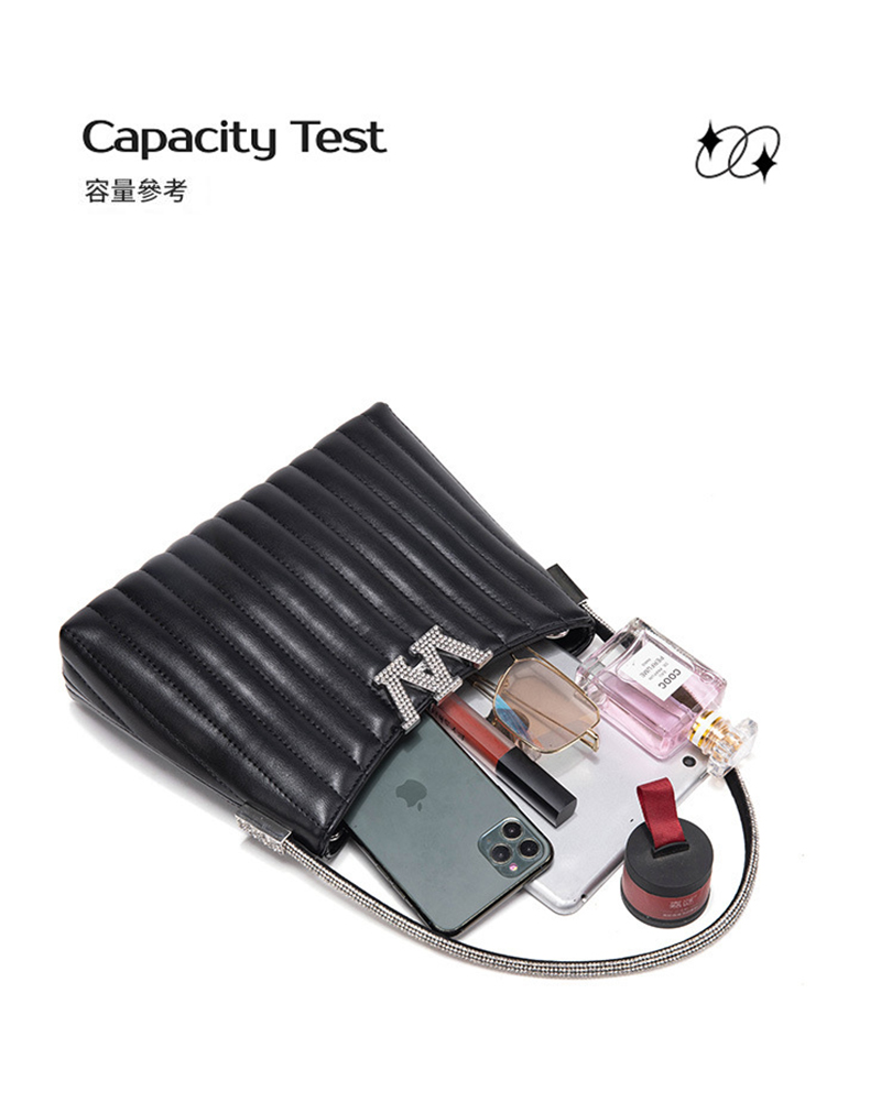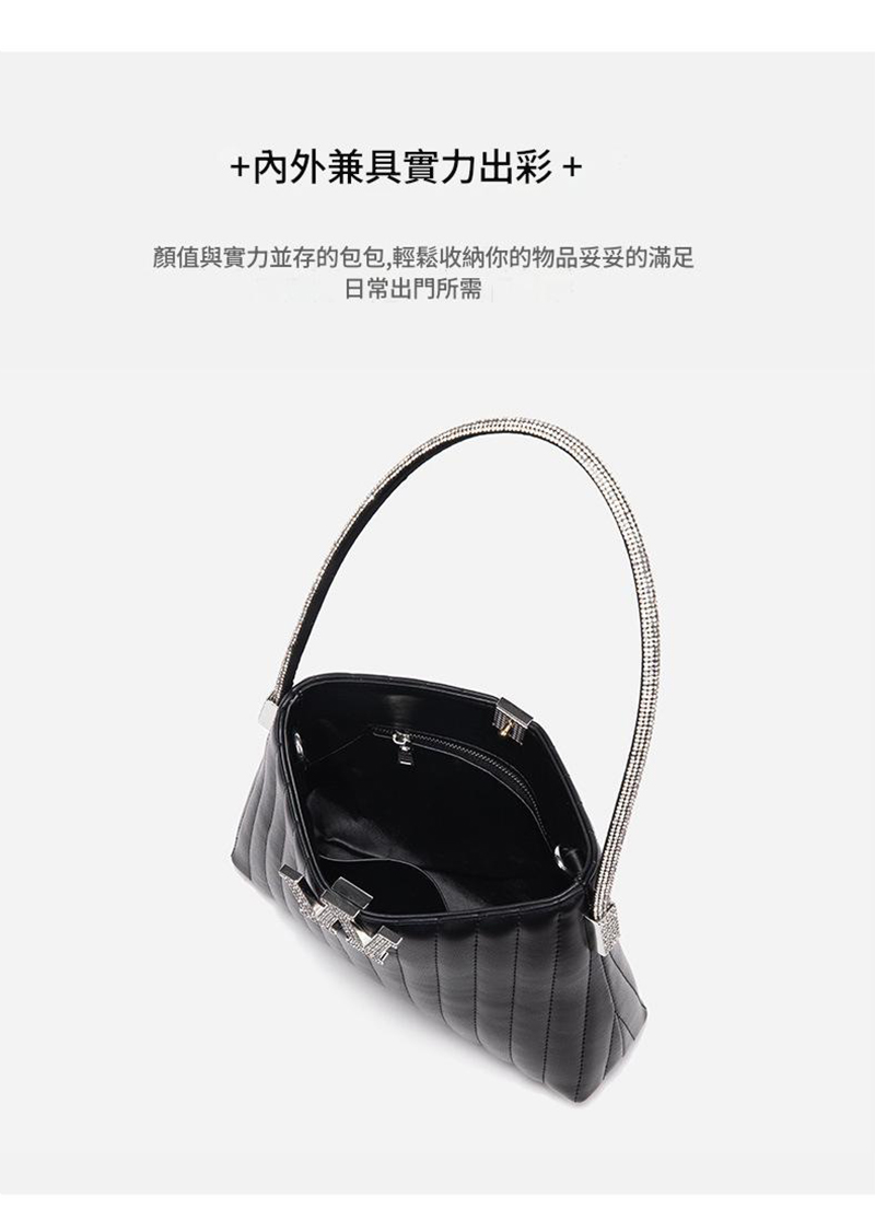 綴飾水鑽: 菱格紋交會處鑲嵌閃爍的水鑽,提升華麗感。