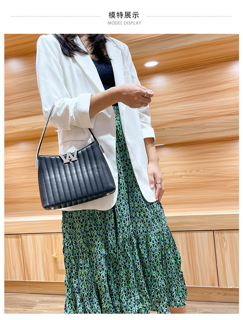 直條紋設計: 包身表面採用簡潔的直條紋絎縫,呈現俐落感。