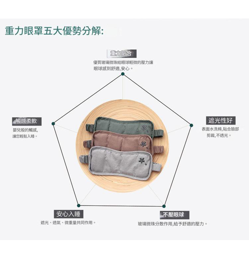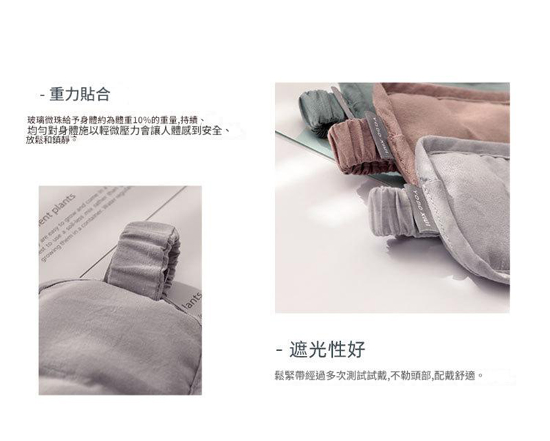 重力貼合,安心舒眠:內含玻璃微珠,提供約體重10%的溫和壓力,有助於身心放鬆,享受深度好眠。