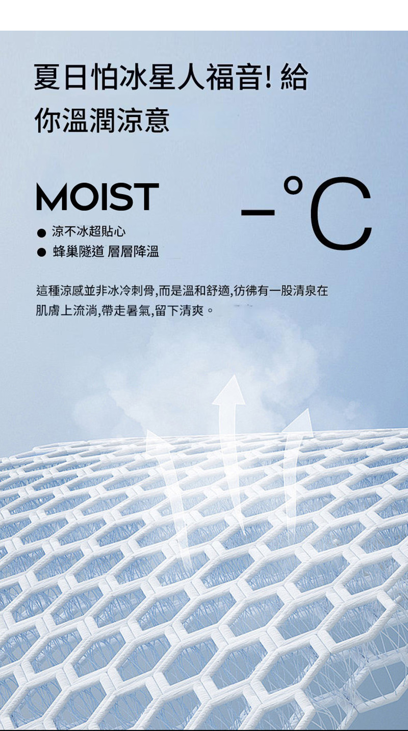 冰涼觸感: 採用特殊涼感面料,接觸皮膚瞬間感到涼爽,有效降溫。