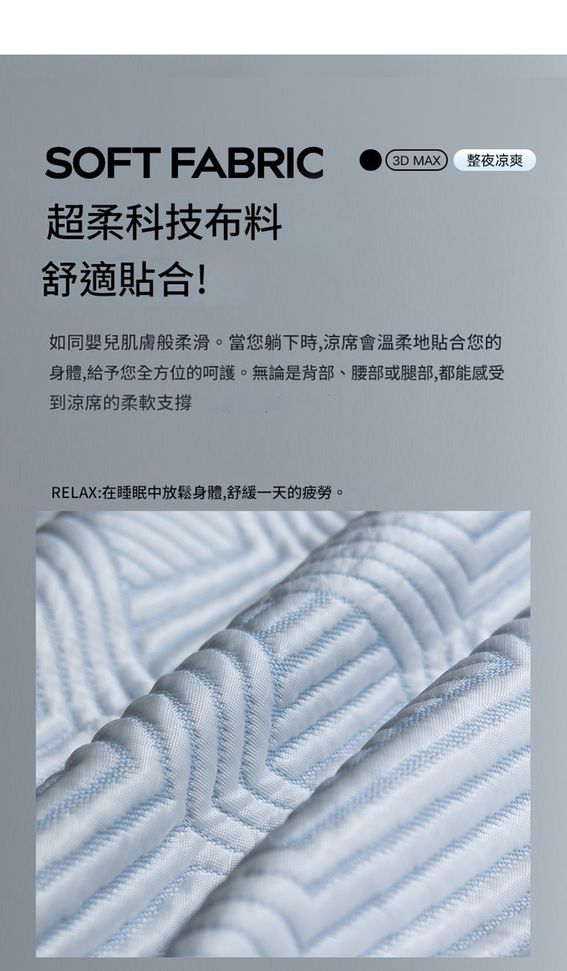 減少接觸面積: 紋路創造出許多高低起伏,減少身體與涼墊的實際接觸面,降低熱傳導。