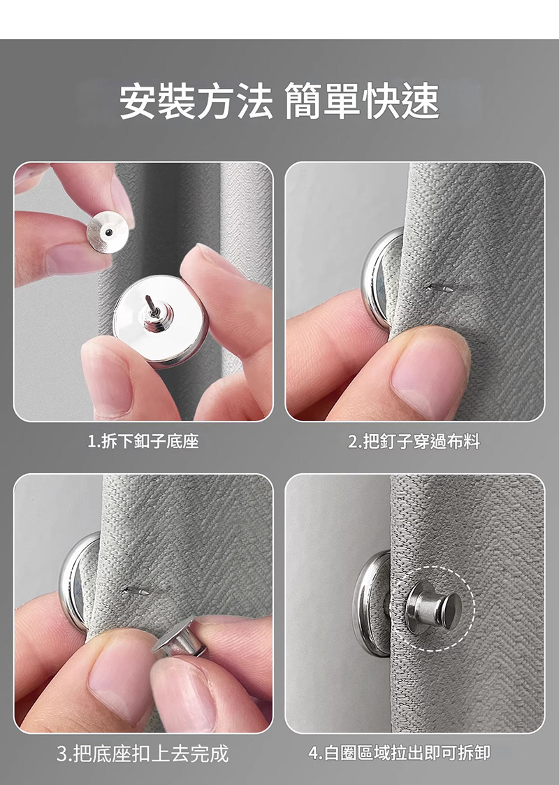 拆卸簡單方便:反覆可用,不傷窗簾布料。