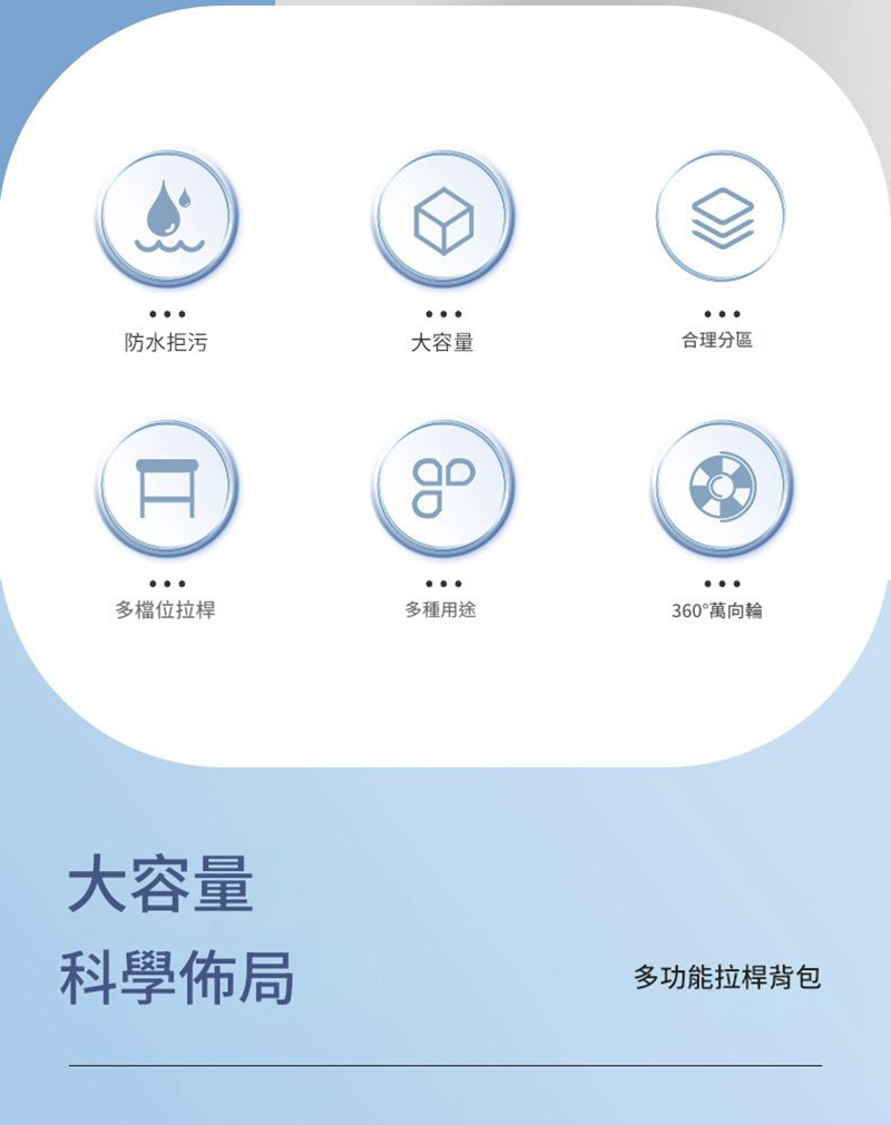 堅固滑輪設計: 底部滾輪耐磨,拖行順暢,適合多種地面。