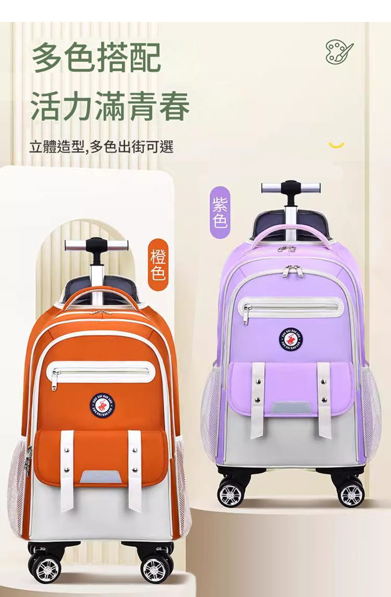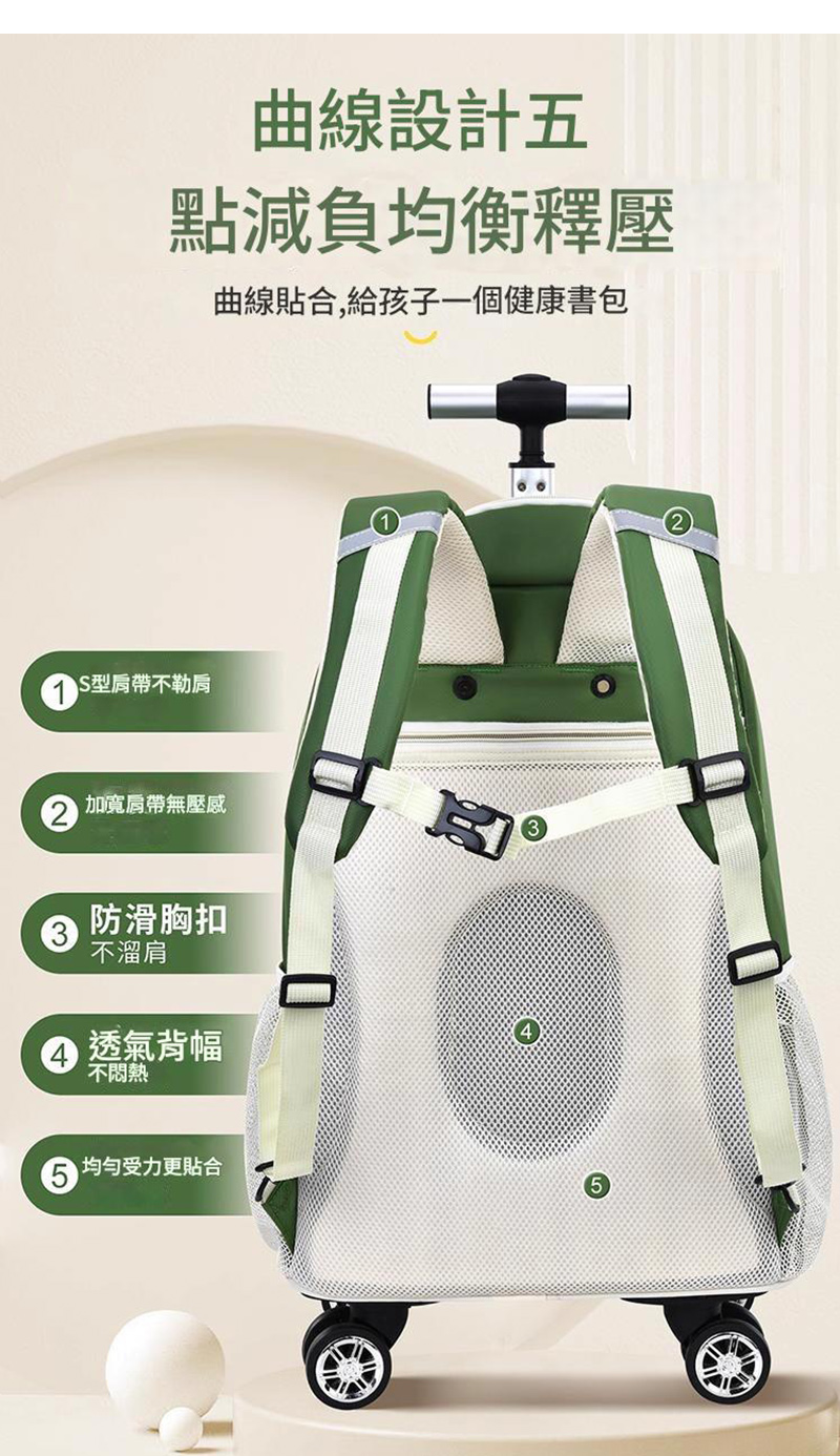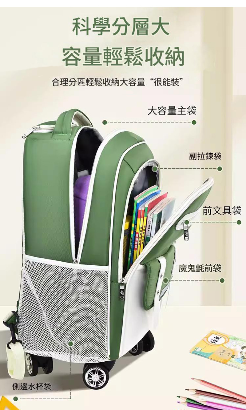 可伸縮拉桿設計: 內建隱藏式拉桿,方便學童拖行,減輕書本重擔。