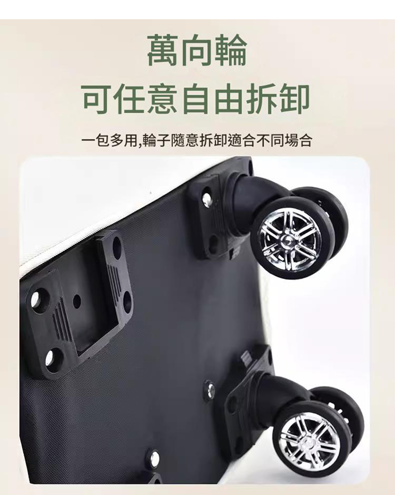 多種背法,可折疊可雙肩:不僅是拉桿包,也可拆卸當作雙肩包或單獨當拖車使用,滿足不同需求。
