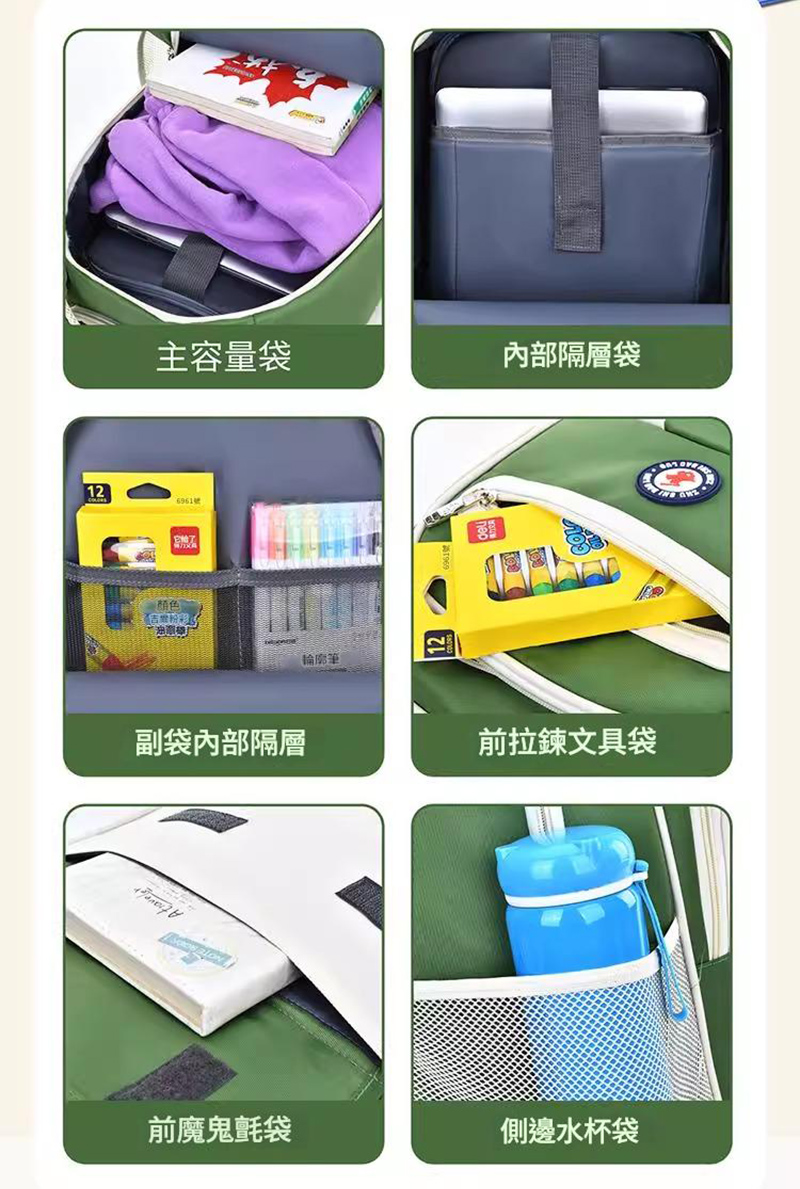 大容量與多隔層: 內部空間寬敞,並設有多個隔層,方便分類收納課本與文具。