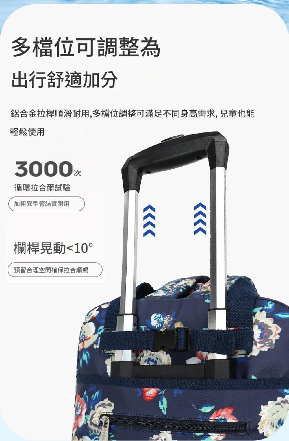※ 因測量方式不同,若有1~2cm誤差皆屬合理範圍。※ 拉桿間隙設計有輕微晃動感,是為了在冷熱天氣不同,熱漲冷縮時依然能將拉桿順暢拉出。