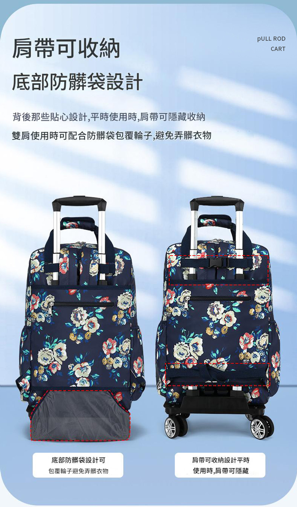 耐用防水布材質: 採用堅固耐磨的面料,經久耐用且易於清潔。
