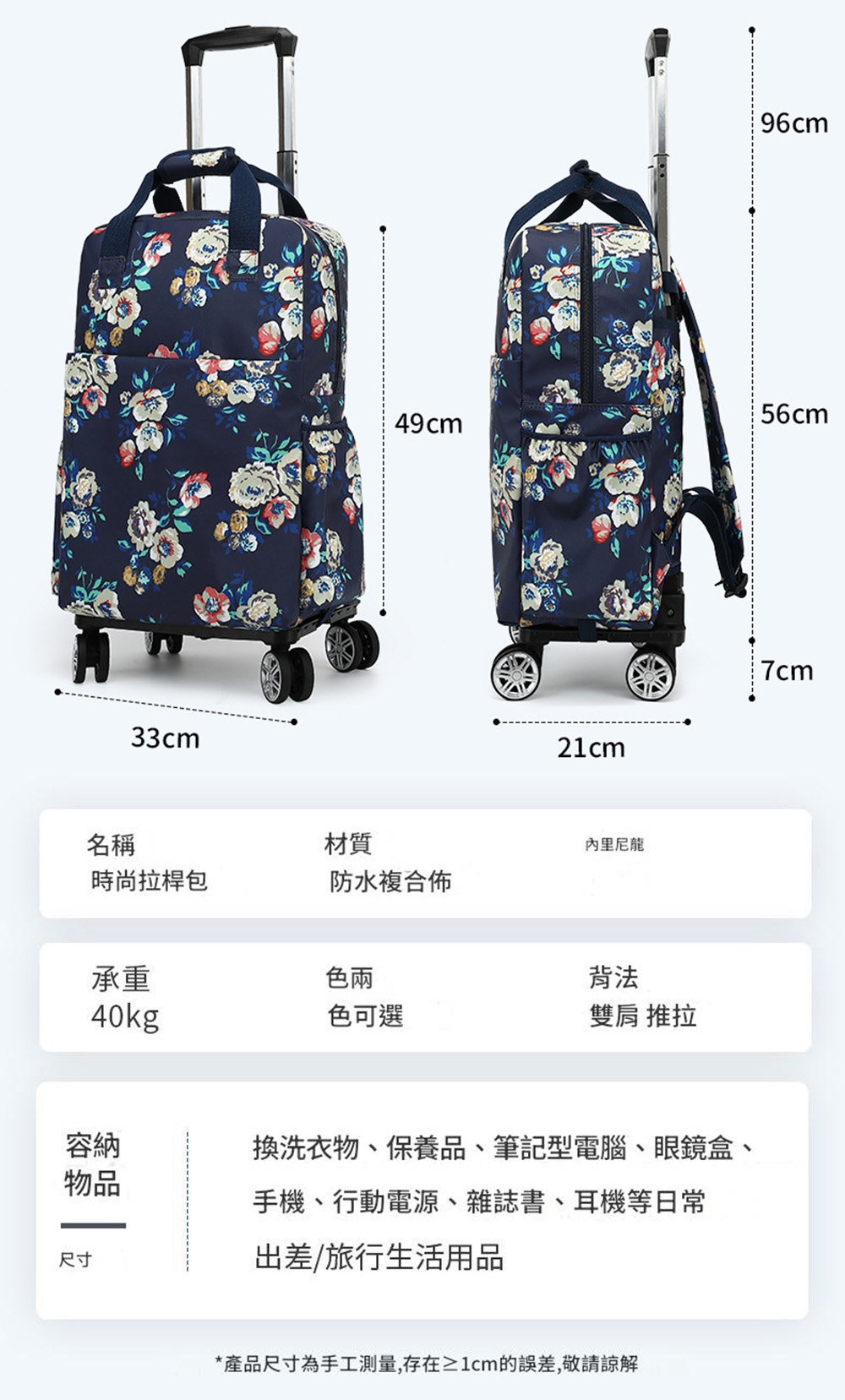 車身:33X21cm輪高7cm桿身拉長至96cm