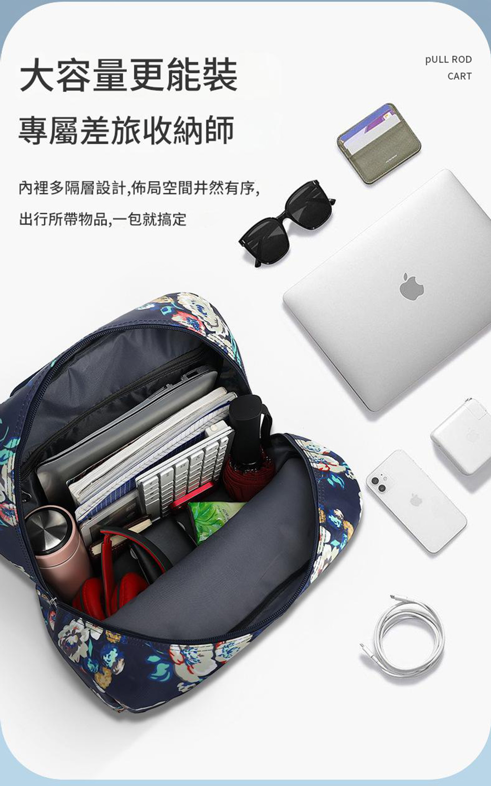 多口袋收納: 包包內外部可能設有多個口袋,方便分類和取用小物。