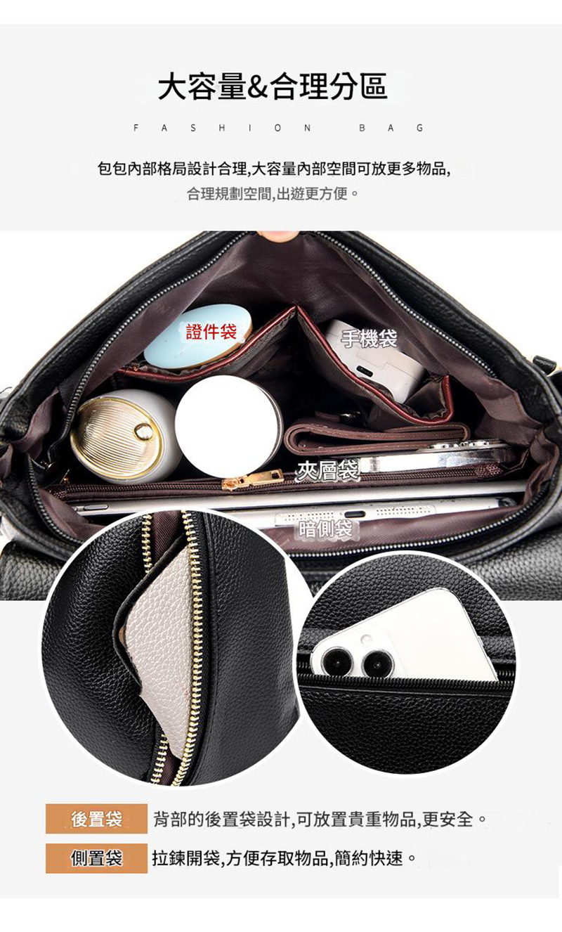 大容量主空間: 內部提供寬敞的收納空間,可輕鬆容納手機、錢包等日常用品。