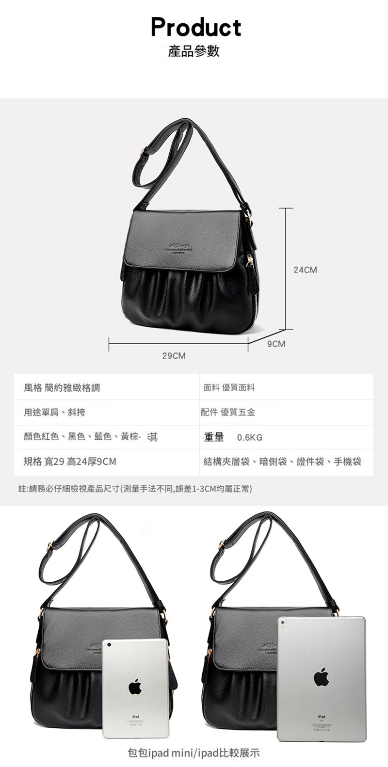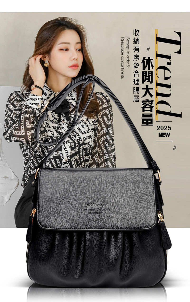 獨特皺摺包型: 採用皺摺包身設計,線條圓潤流暢,獨具時尚感。