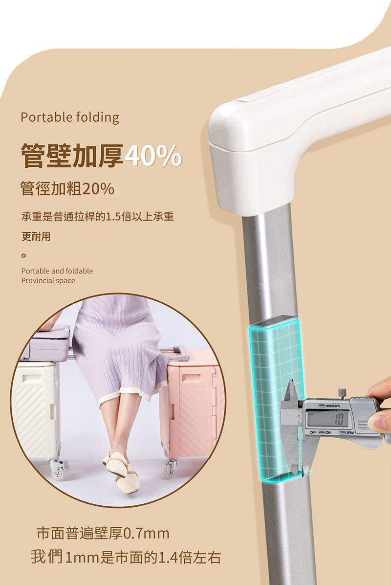 ※ 因測量方式不同,若有1~2cm誤差皆屬合理範圍。※ 拉桿間隙設計有輕微晃動感,是為了在冷熱天氣不同,熱漲冷縮時依然能將拉桿順暢拉出。