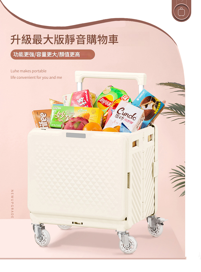 悅生活--GoTrip微旅行 磁吸式一體成形滑蓋寬拉桿折疊購物車