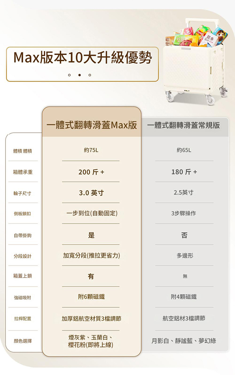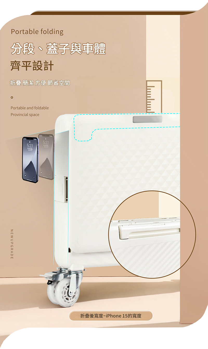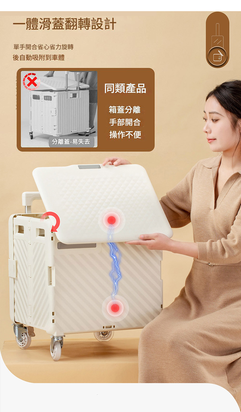 輕量化材質: 採用輕巧耐用的材質製成,即使裝滿物品,推拉也輕鬆省力。