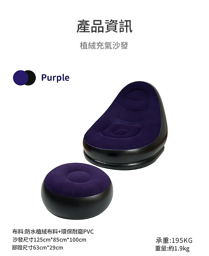 悅生活—GoTrip微旅行 豪華款植絨充氣沙發組