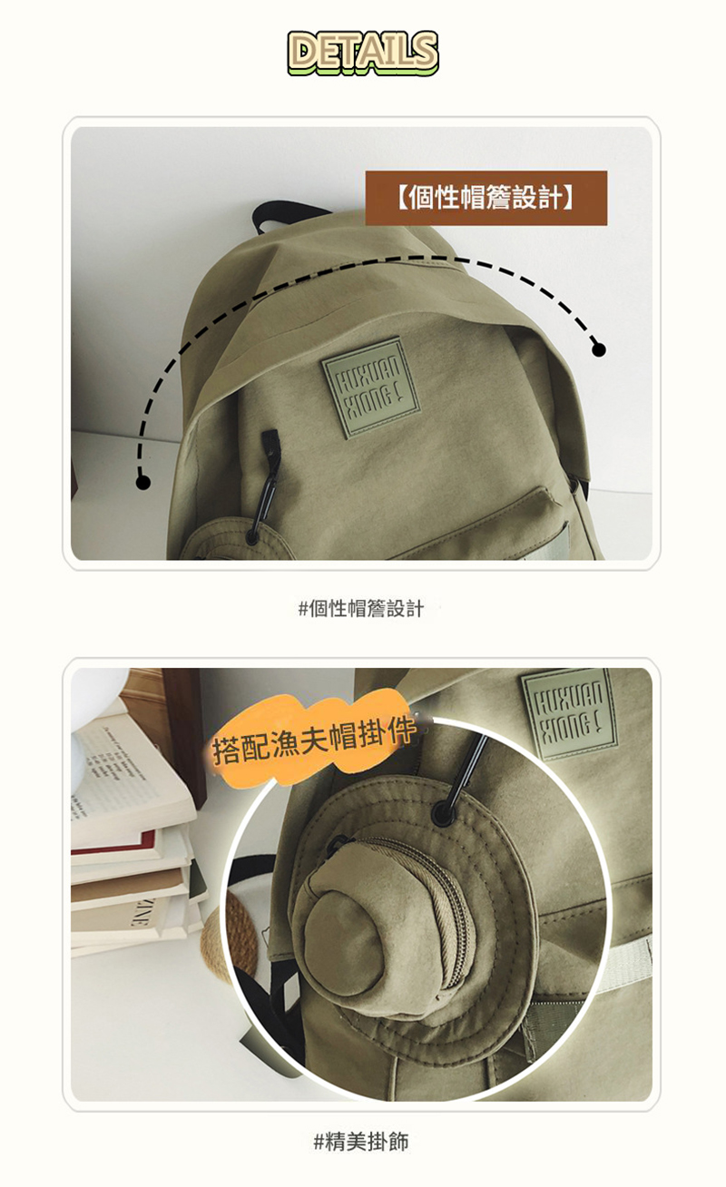 獨特帽型設計:包頂有可愛帽簷,造型別緻吸睛。