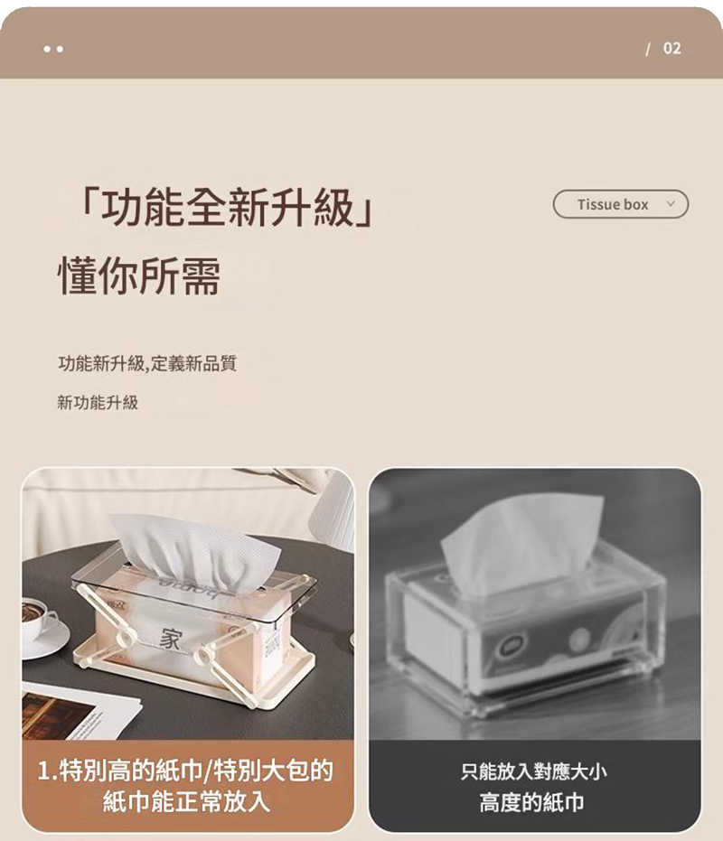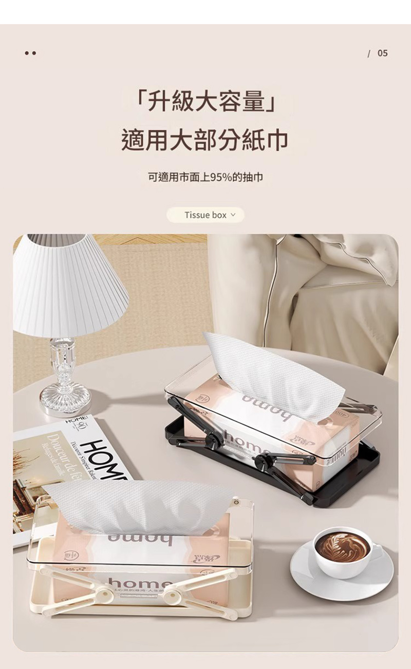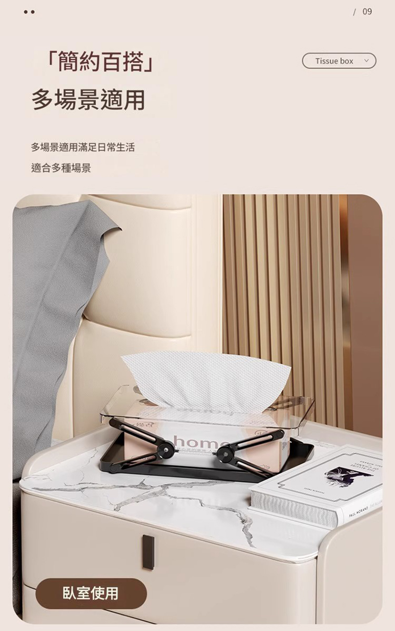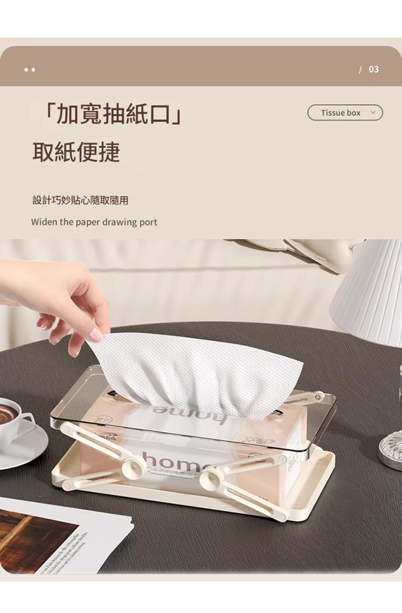 專利彈簧自動升降設計: 內建彈力托板,使衛生紙始終保持在盒口高度。