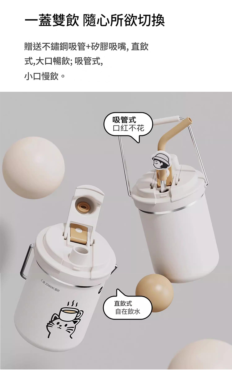 一蓋雙飲隨心切換,直飲或吸管式。 滿足不同場合與飲用習慣。