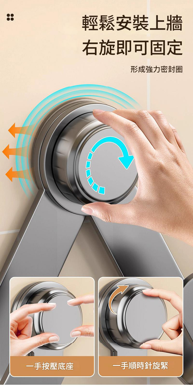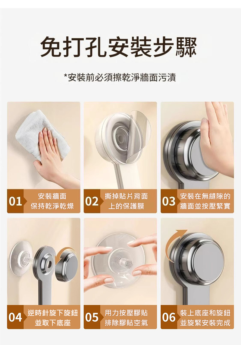 免鑽孔超佛心:使用強力吸盤無痕吸附不傷牆,裝上去不用五秒鐘。