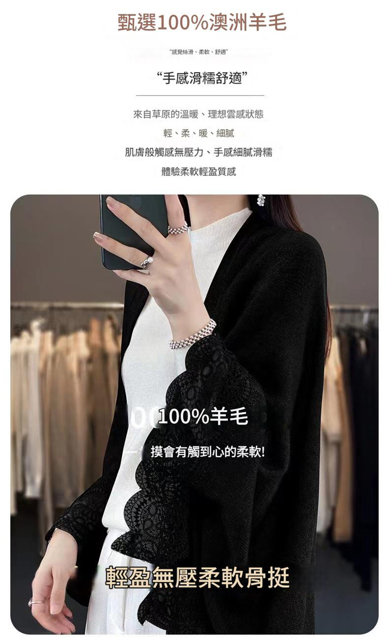 MICOACH 瑞典貴族款輕盈蕾絲100%羊毛罩杉