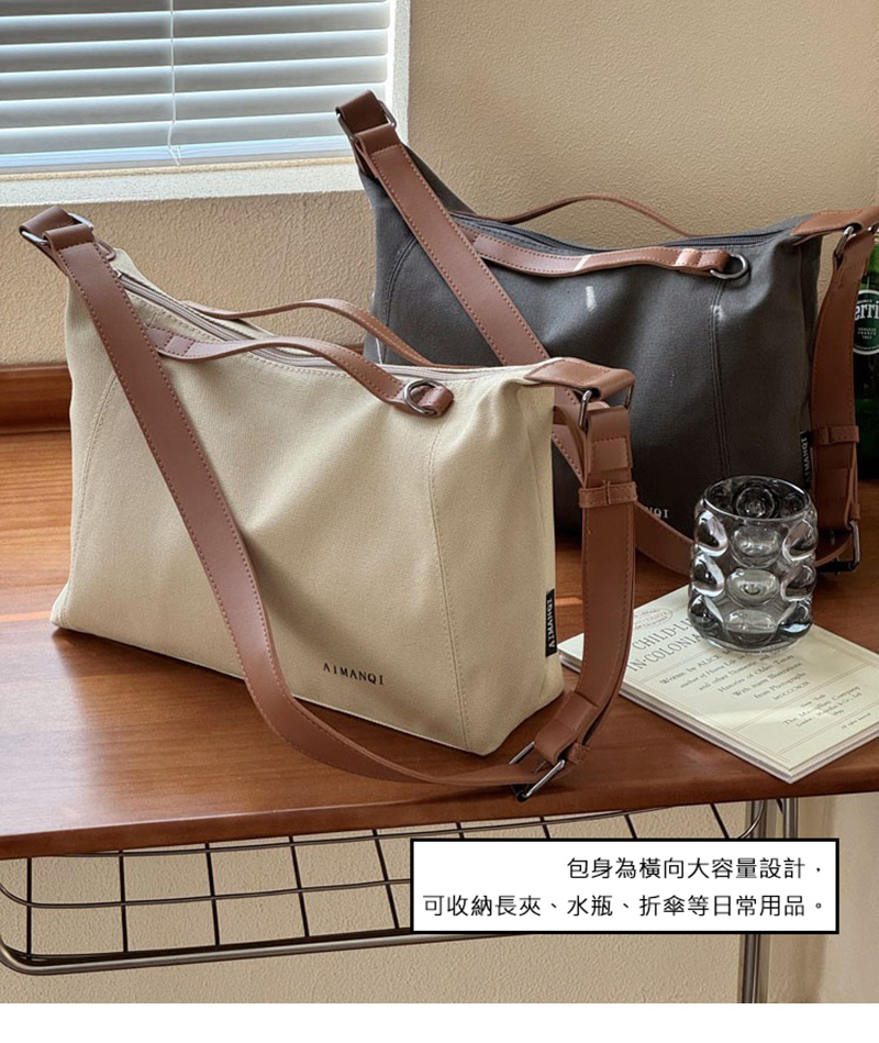 材質厚實耐用,包包不易變形,能承受較重物品。