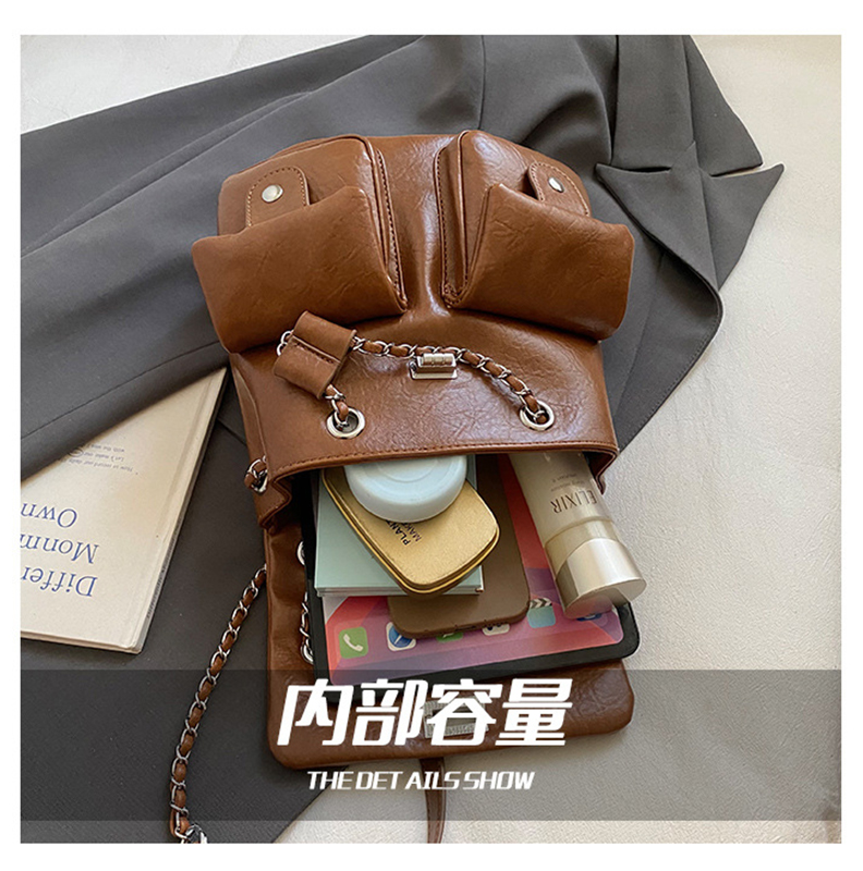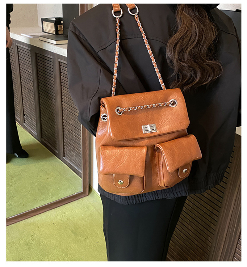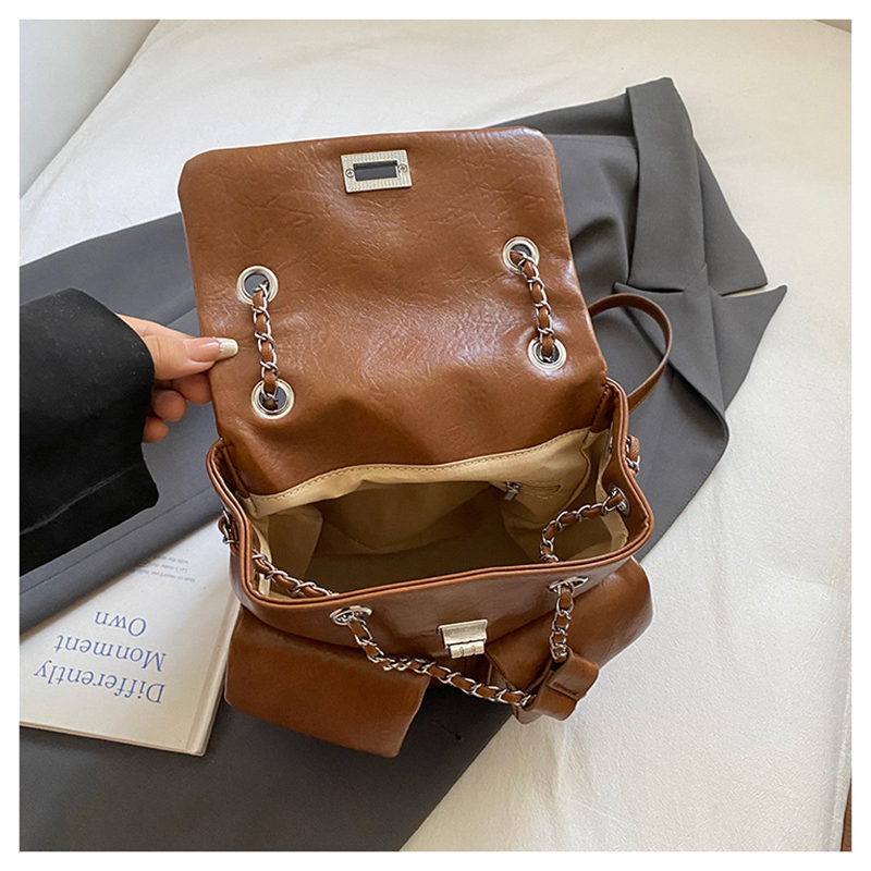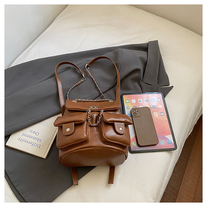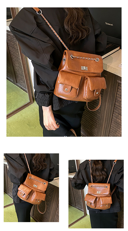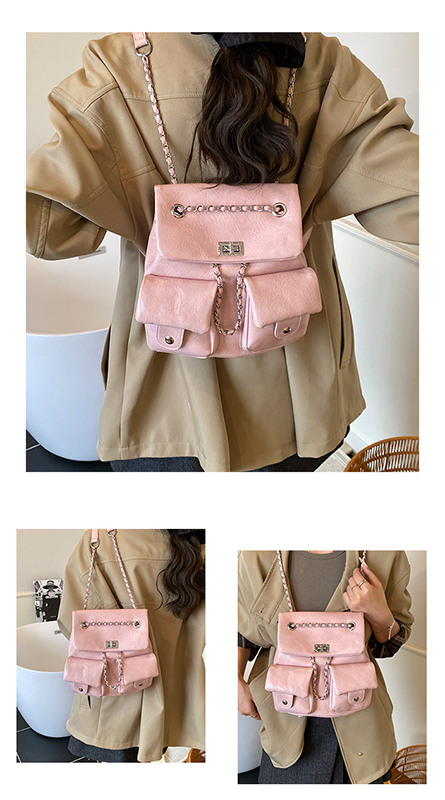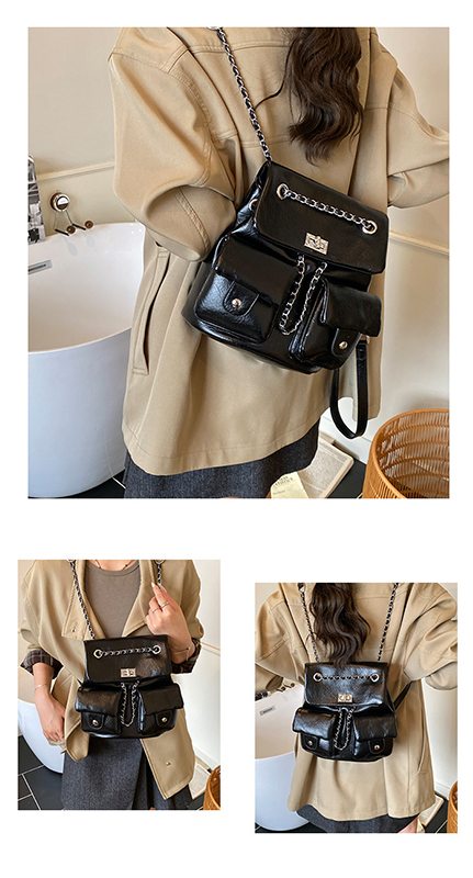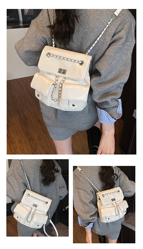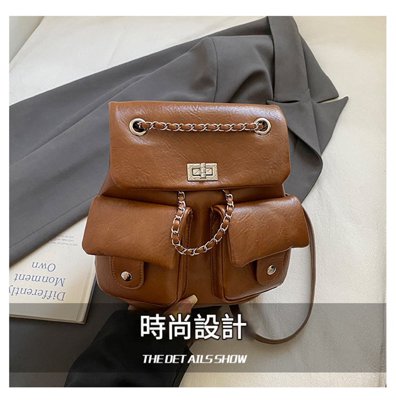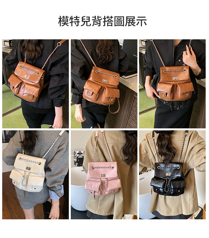 金屬鏈條點綴,增添時尚感,讓包包看起來更精緻。