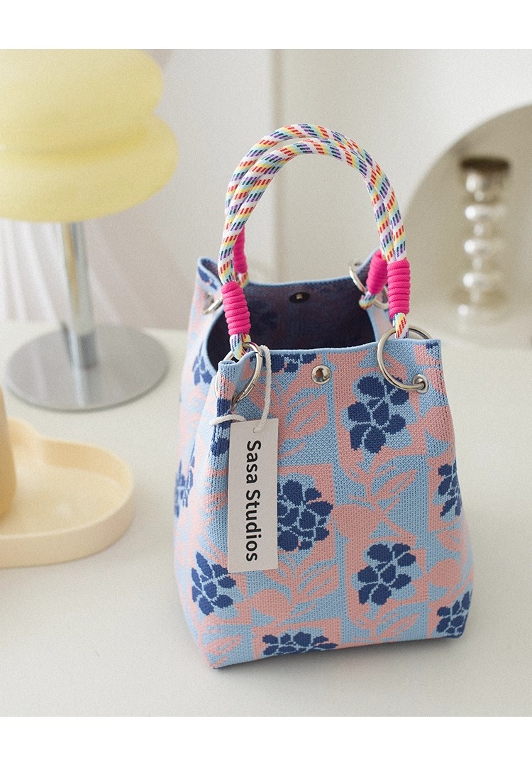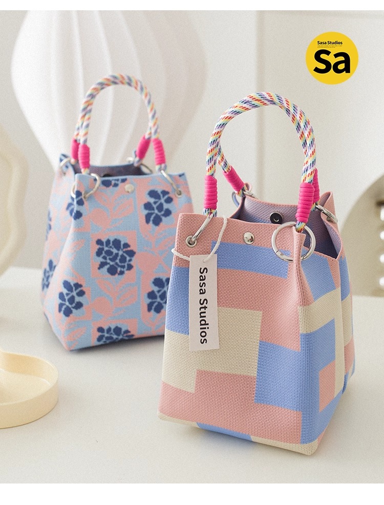 外型為可愛水桶包廓形,屬於迷你手提包款。