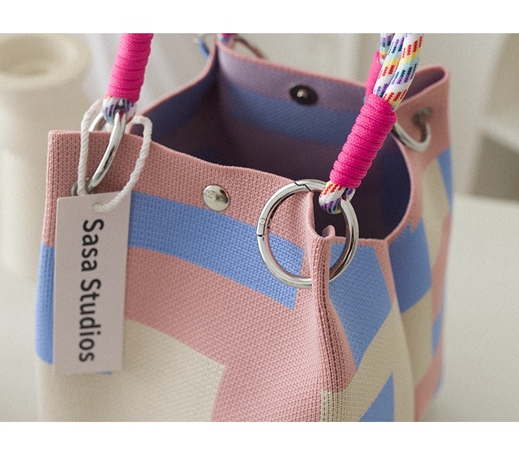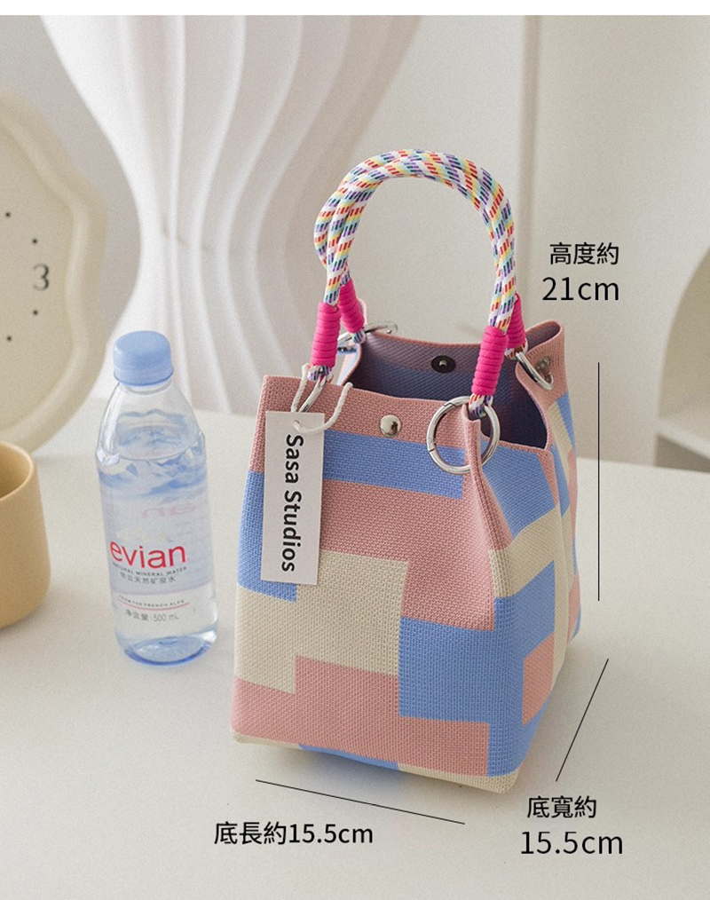 提把以彩色編織繩設計,並搭配螢光色飾條固定,兼具手感與時尚感。