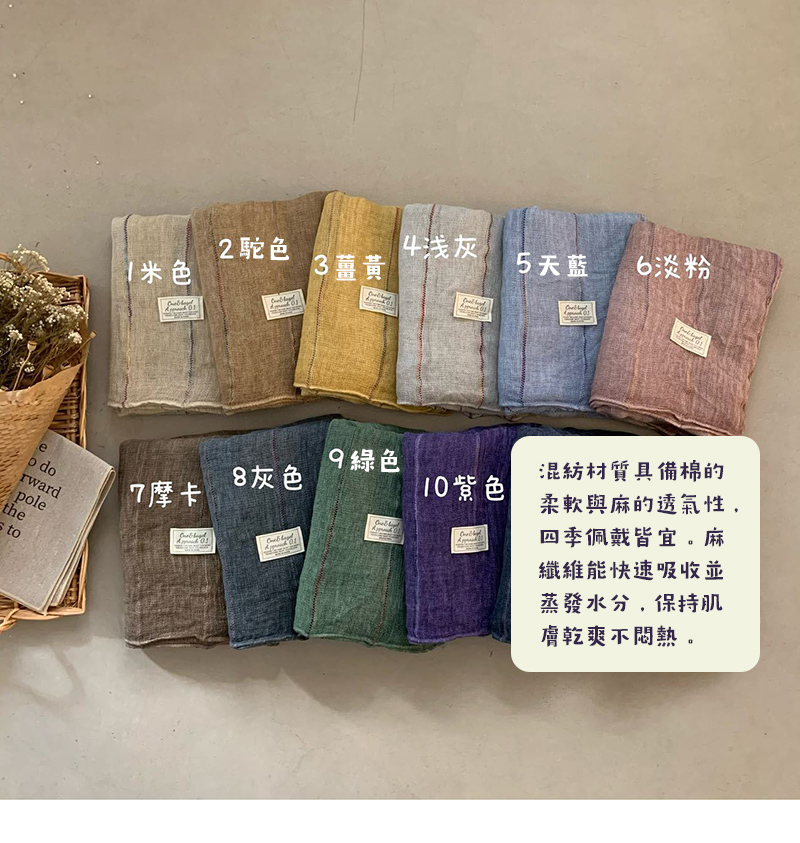 MICOACH 舊時光的溫柔文藝棉麻圍巾A款