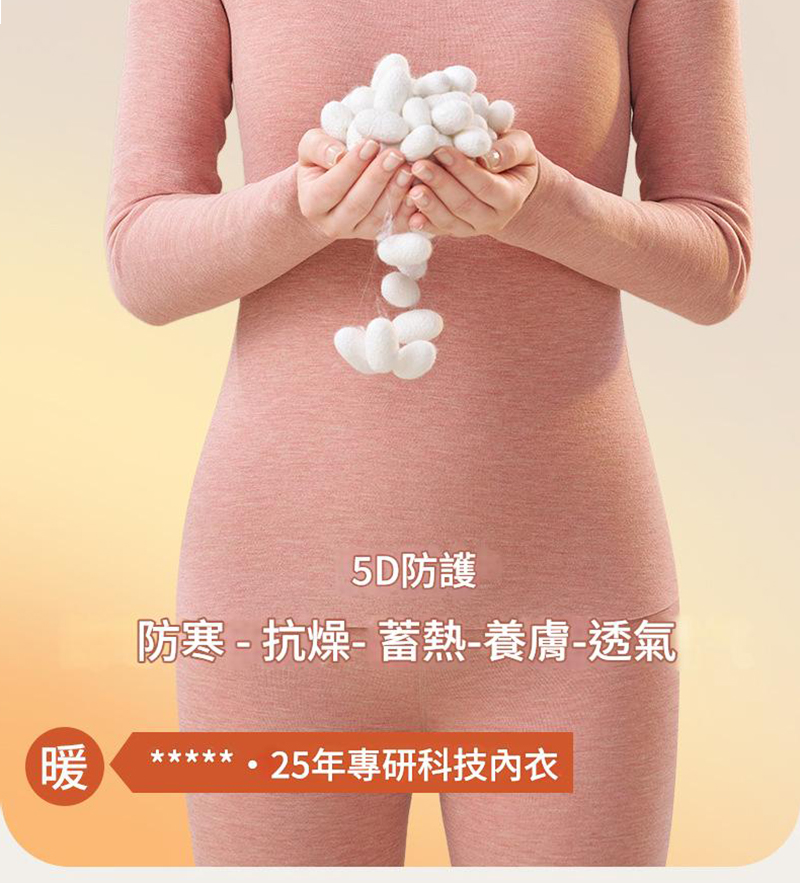 5D科技防護: 具備防寒、抗燥、蓄熱、養膚、透氣等5種功能。