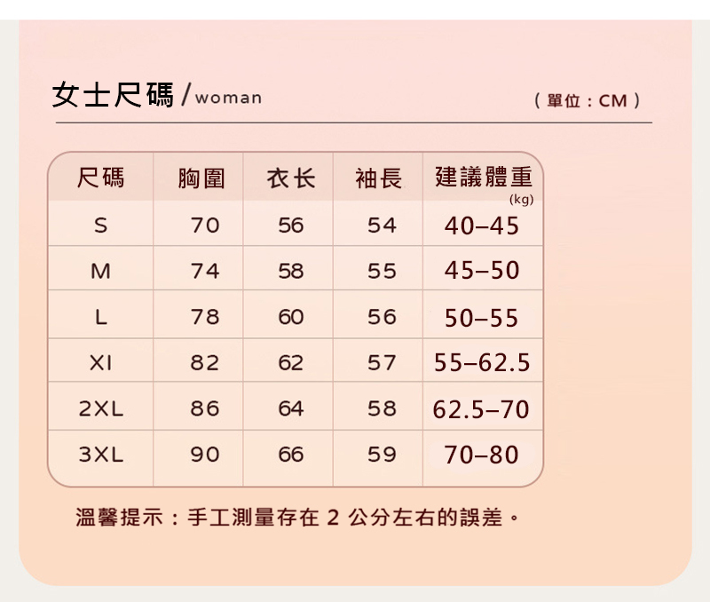 尺寸--S/M/L/XL/2XL/3XL