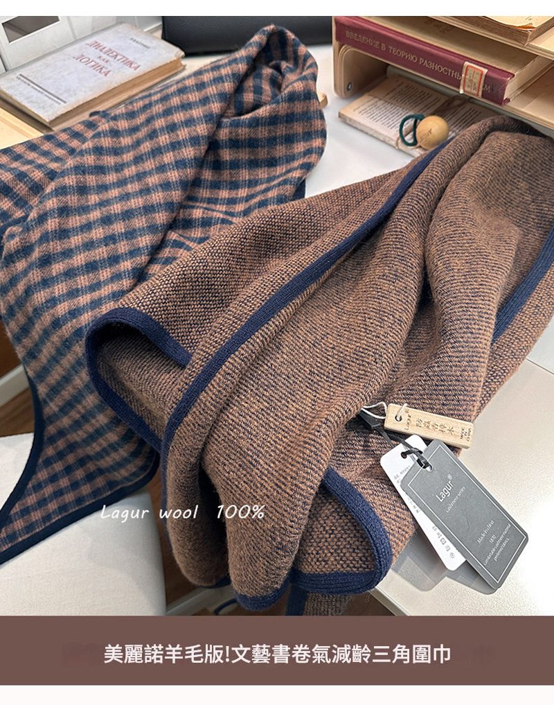 MICOACH 英國王室風100%頂級美麗諾羊毛三角披肩