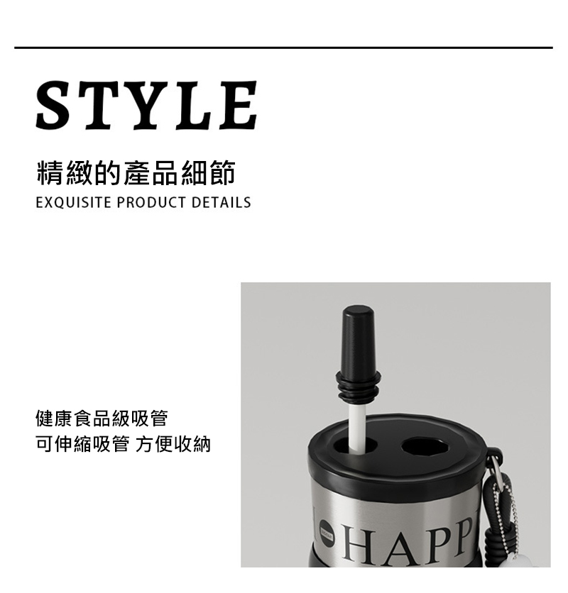 伸縮隱藏吸管,防塵衛生且收納超方便。