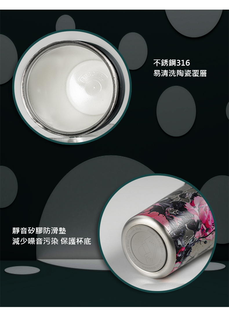 靜音防滑杯底,矽膠墊保護杯身不刮傷。