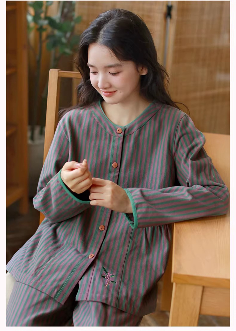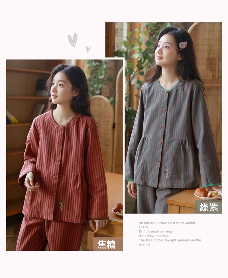 日系條紋睡衣:簡約百搭長袖套裝,顯瘦不臃腫。