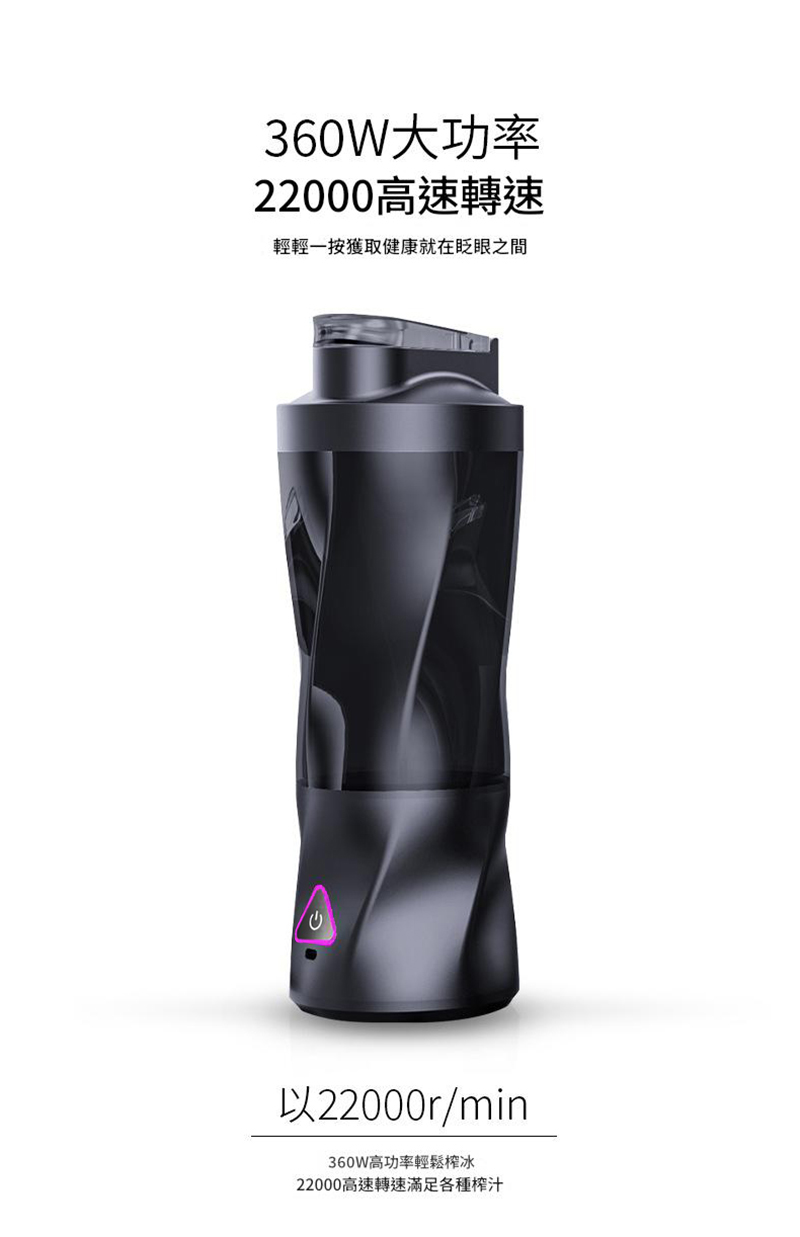 360W強勁動力,22000轉高速瞬碎冰塊果實。